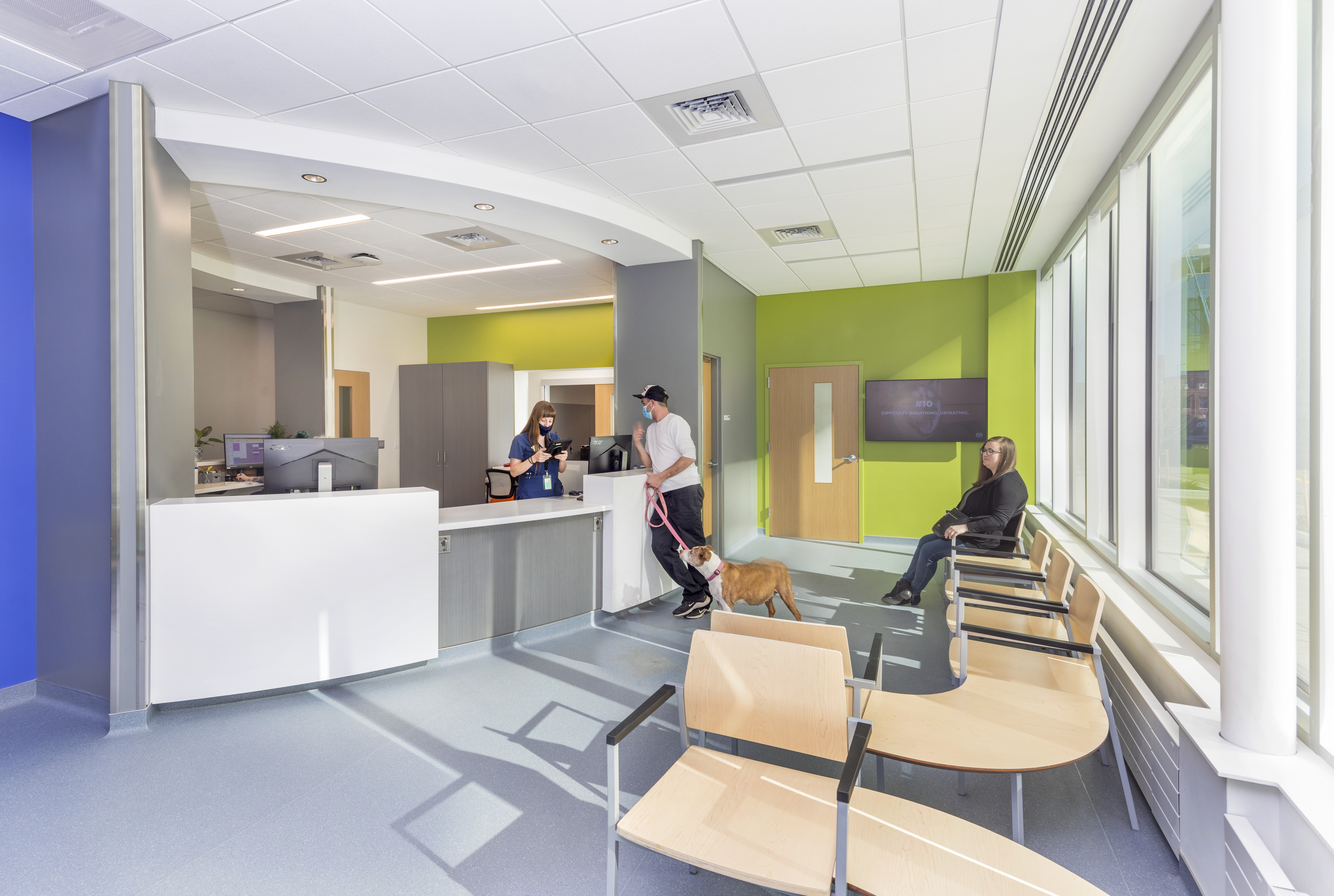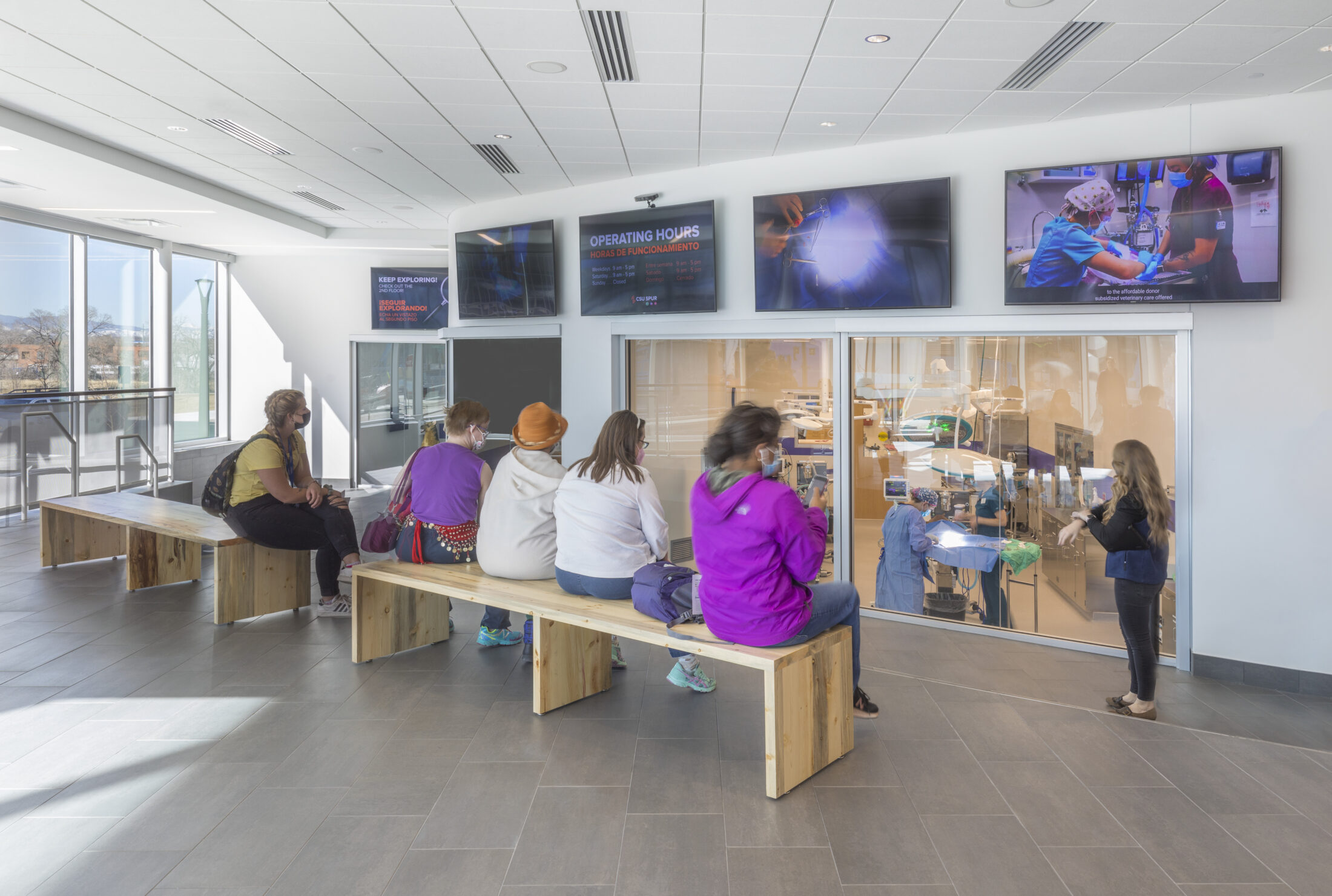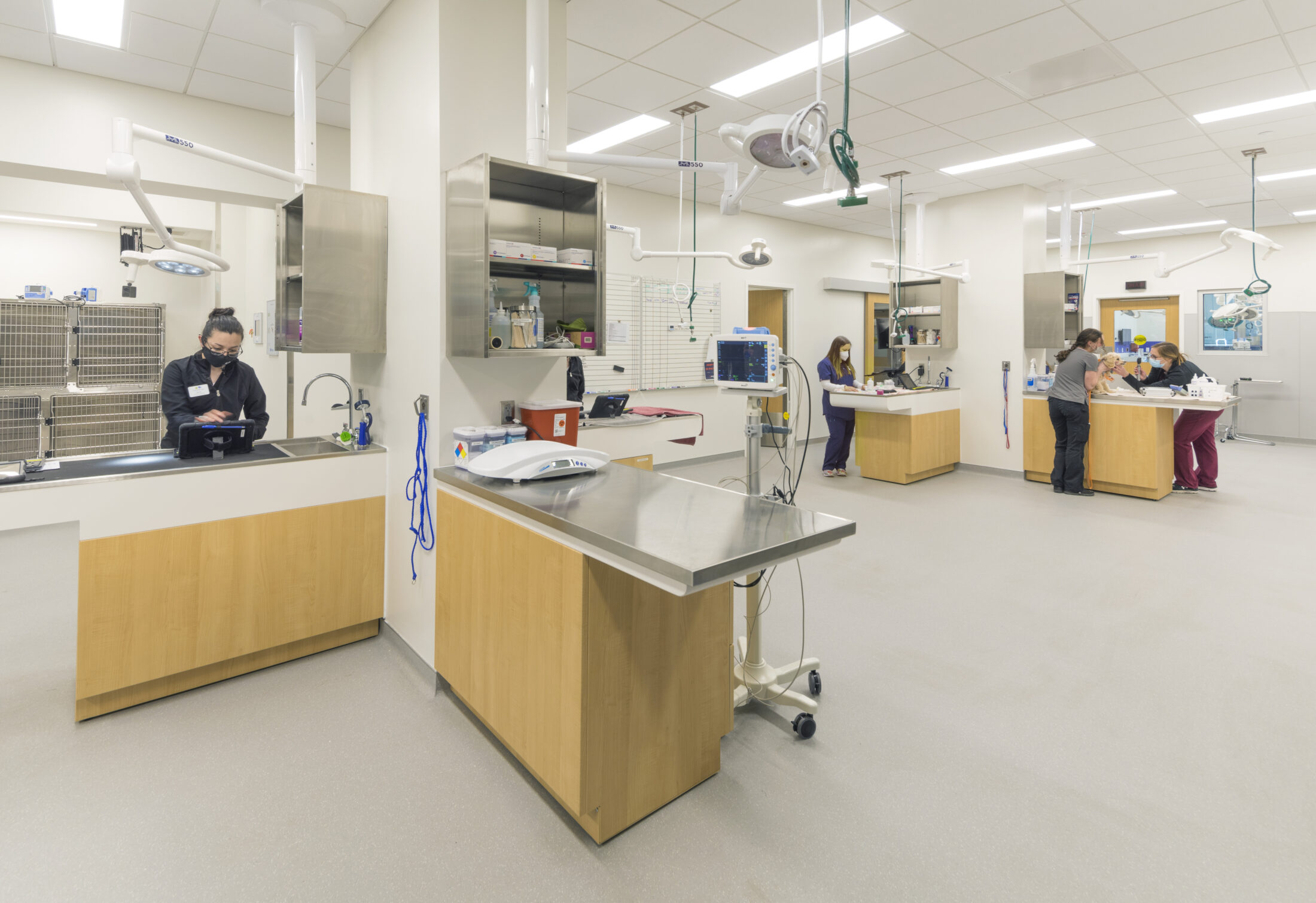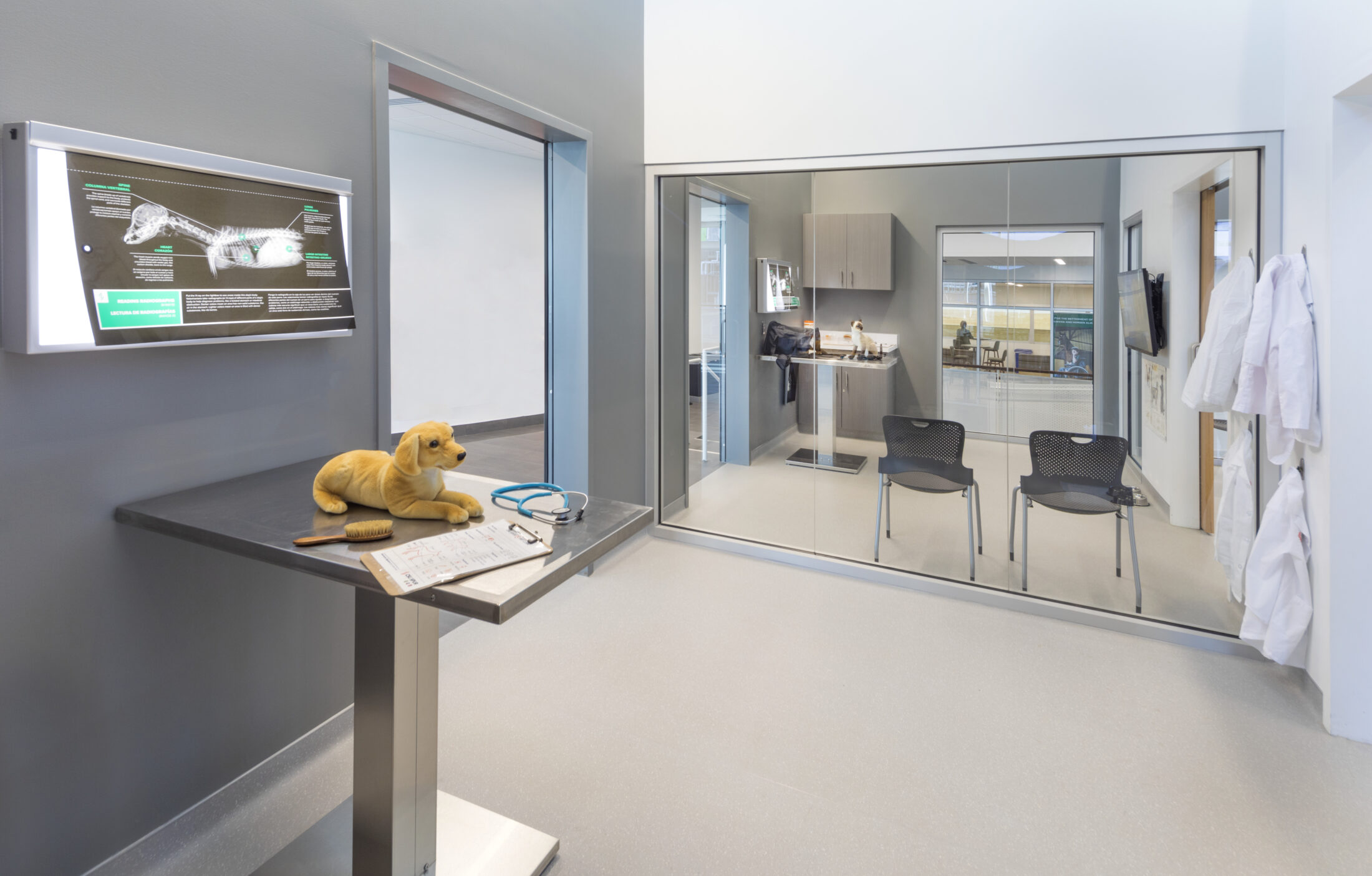 INVISION Architecture served as the national design consultant to Clark & Enersen for Vida, the first of the new CSU Spur buildings to open. The 114,000-square-foot facility is committed to engaging the public through interactive experiences that display the connection between human and animal life. Our team played a vital role in the planning and execution of the small animal hospital and clinic, run and operated by the The Dumb Friends League. This public veterinary hospital at Spur provides donor-subsidized spay and neuter treatment, surgery and medical treatment for underserved pets and feral animals of the greater Denver area. Exam rooms and support spaces were split between public and private areas to allow for public viewing and to maintain efficiency in operations. INVISION implemented elements from the “Fear Free Design” concept, combining animal neuroscience and architecture to design a veterinary clinic that aims to lower stress levels and to eliminate the fight or flight response from animals brought into the clinic. In its first year of operation, the DFL served more than 6,000 pets at CSU Spur as it continues to serve the local Denver community and animals in need.