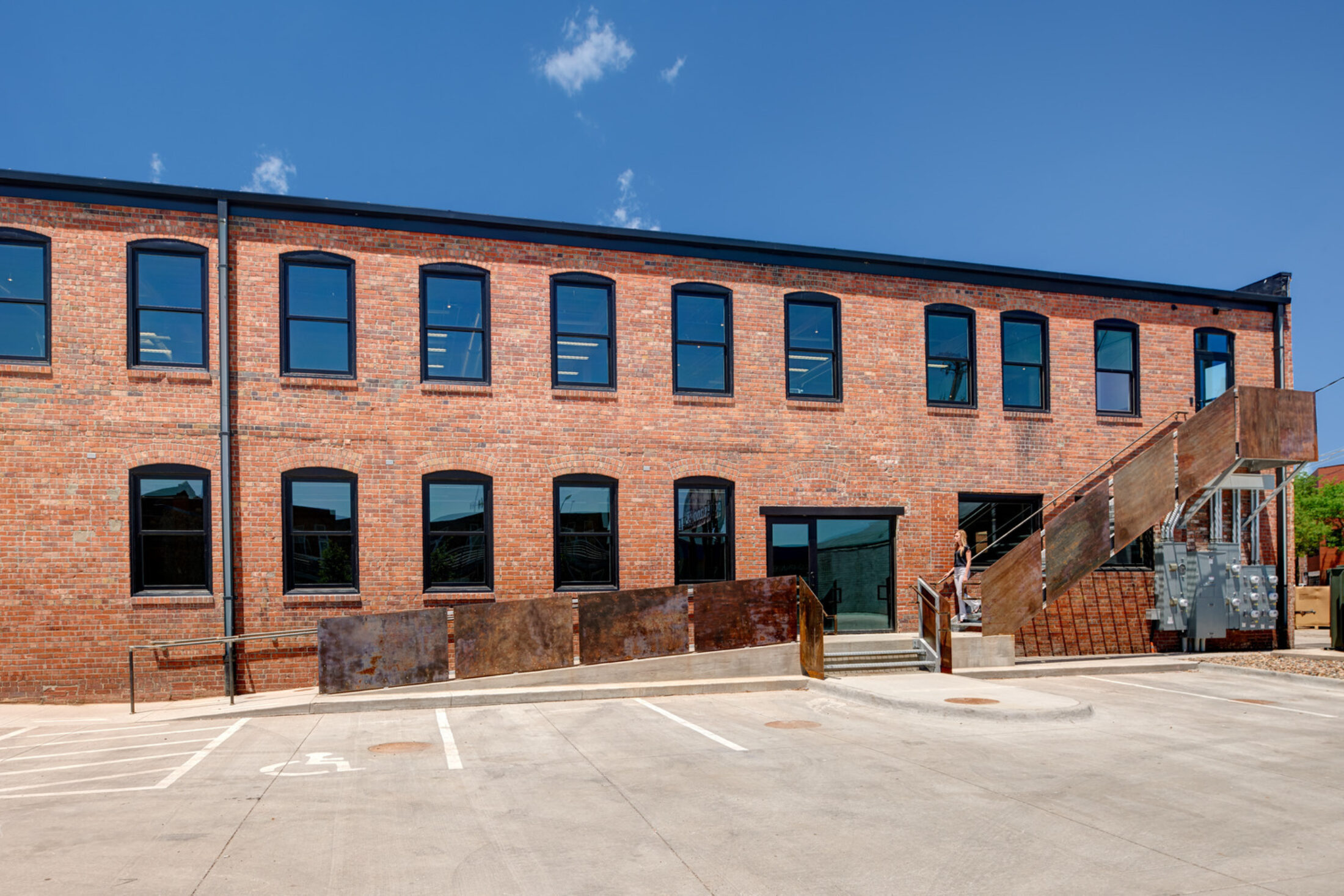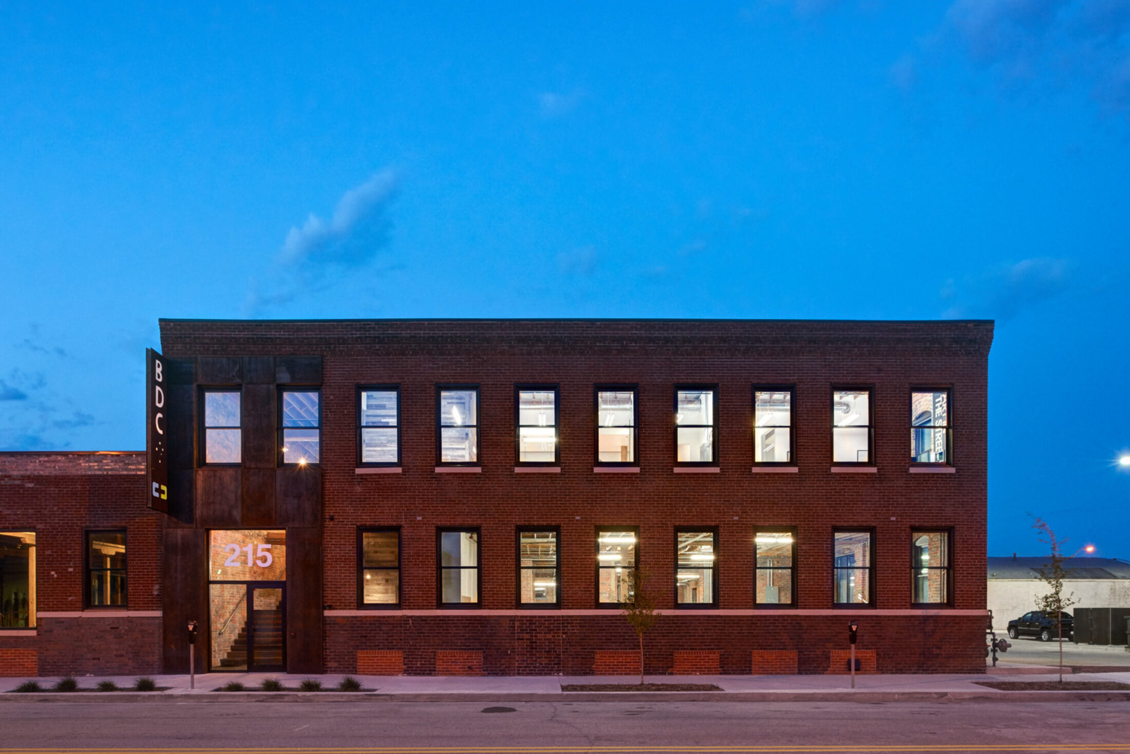 Seeking new office space in Downtown Des Moines, Beal Derkenne Construction and Christensen Development wanted to bring together their appreciation for the area’s architectural heritage with their interest in clean, modern design. After purchasing the former Dilley Manufacturing building in the East Village, the two companies partnered with INVISION to renovate the former paper manufacturing warehouse into new commercial and restaurant tenant spaces.