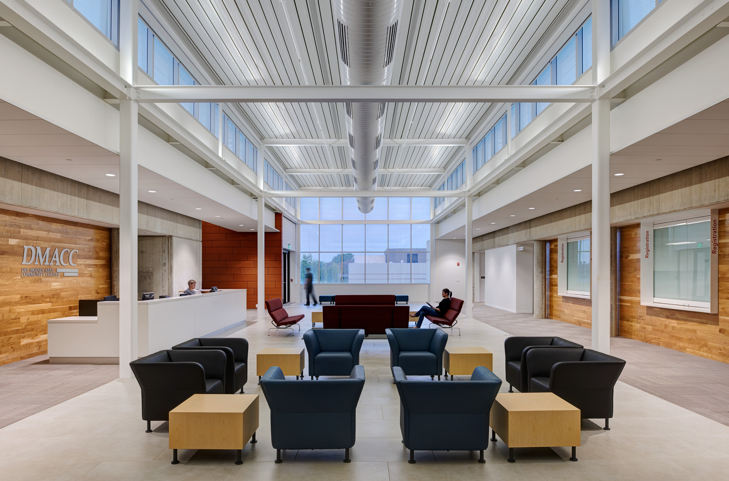 To enhance the identity of their student services on campus and provide an improved experience for recruiting and registering students, the Des Moines Area Community College (DMACC) project included 26,400sf of interior renovation and a 12,000sf one-story addition. To maintain access and use of the existing building throughout construction, a thorough phasing plan was also developed.