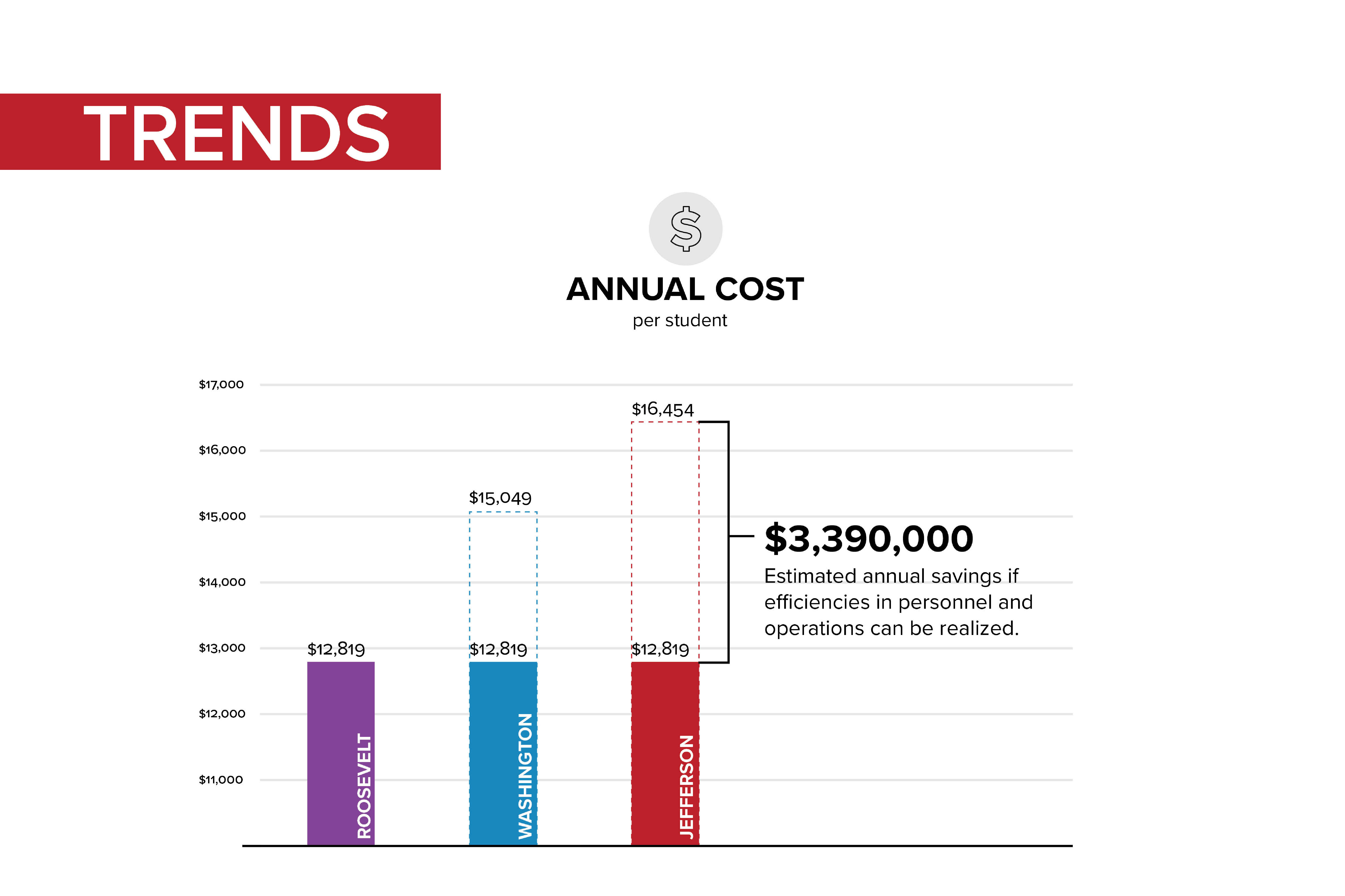 Consolidating could save the district up to $3 million annually in operational costs and create a more equitable feeder system for the high schools. The study aimed to address key challenges and improve the district’s financial and educational standing.