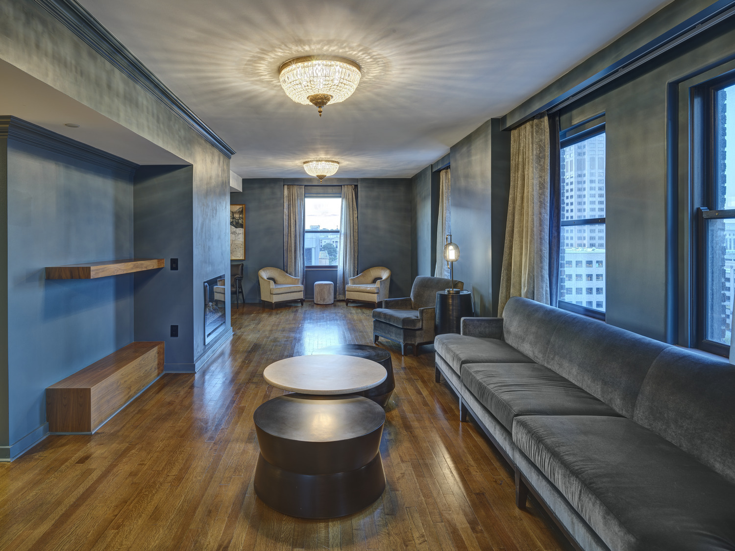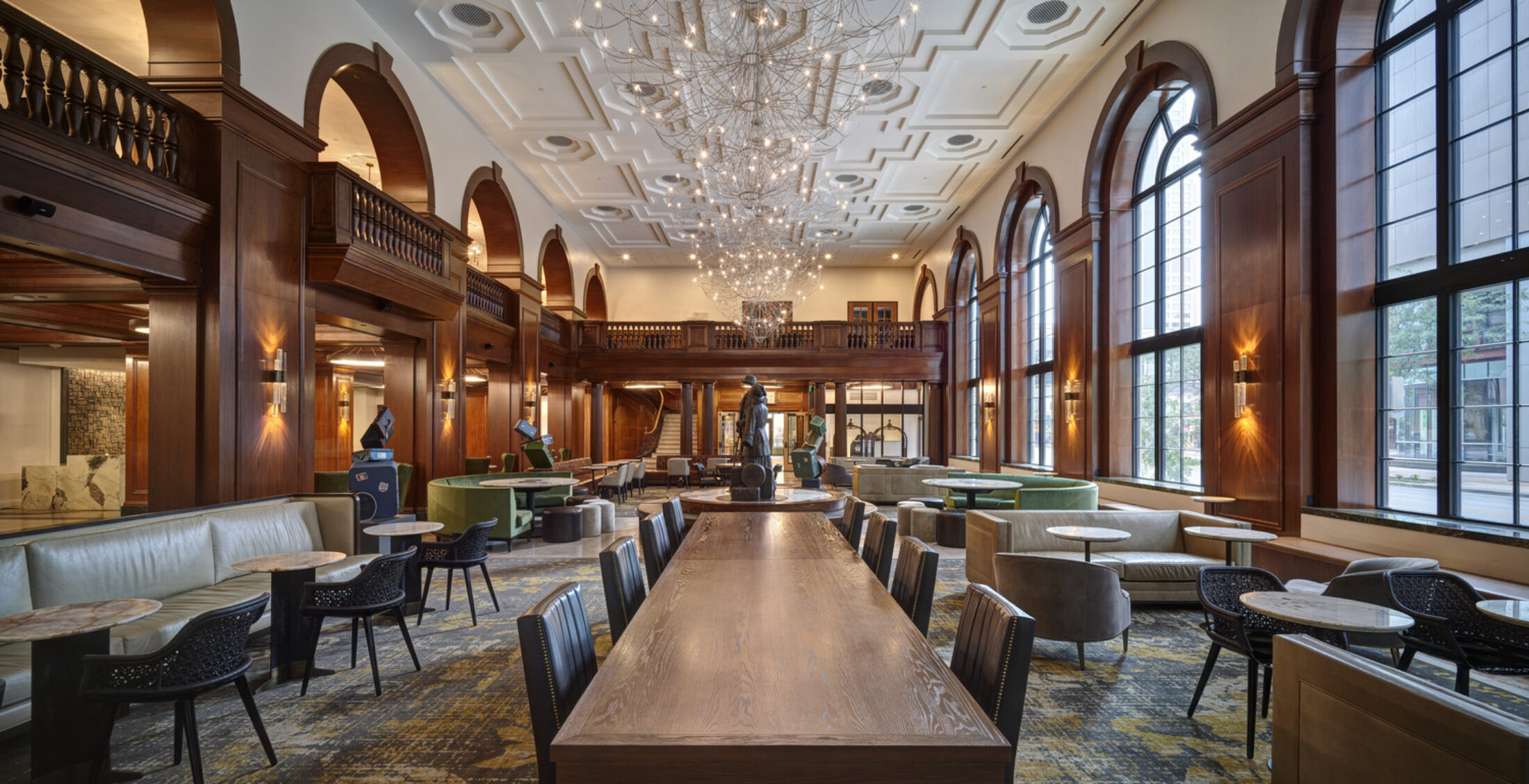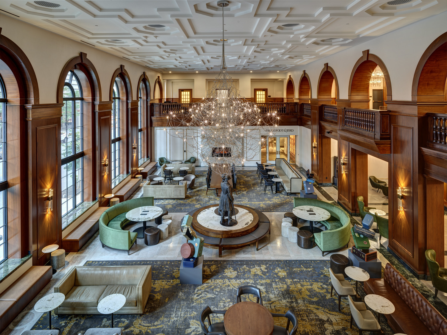 The building, which has been in continuous operation over the last 100 years, includes 290 renovated guest rooms on floors three through 11, totaling approximately 241,000 gross square feet. The renovation retained the original floor layout, but the number of total guest rooms was cut, allowing for larger rooms to accommodate modern travelers. A second level infill completed in 1962 was demolished to provide the hotel and its guests with a fully restored, two-story lobby including a grand stairway and three-elevator hallway. In addition, the first two stories boast public spaces including a study, reading room, the Walnut Boardroom, Proudfoot & Bird restaurant and Hobnob Coffee and Wine Bar, a café with storefront features and outdoor seating.