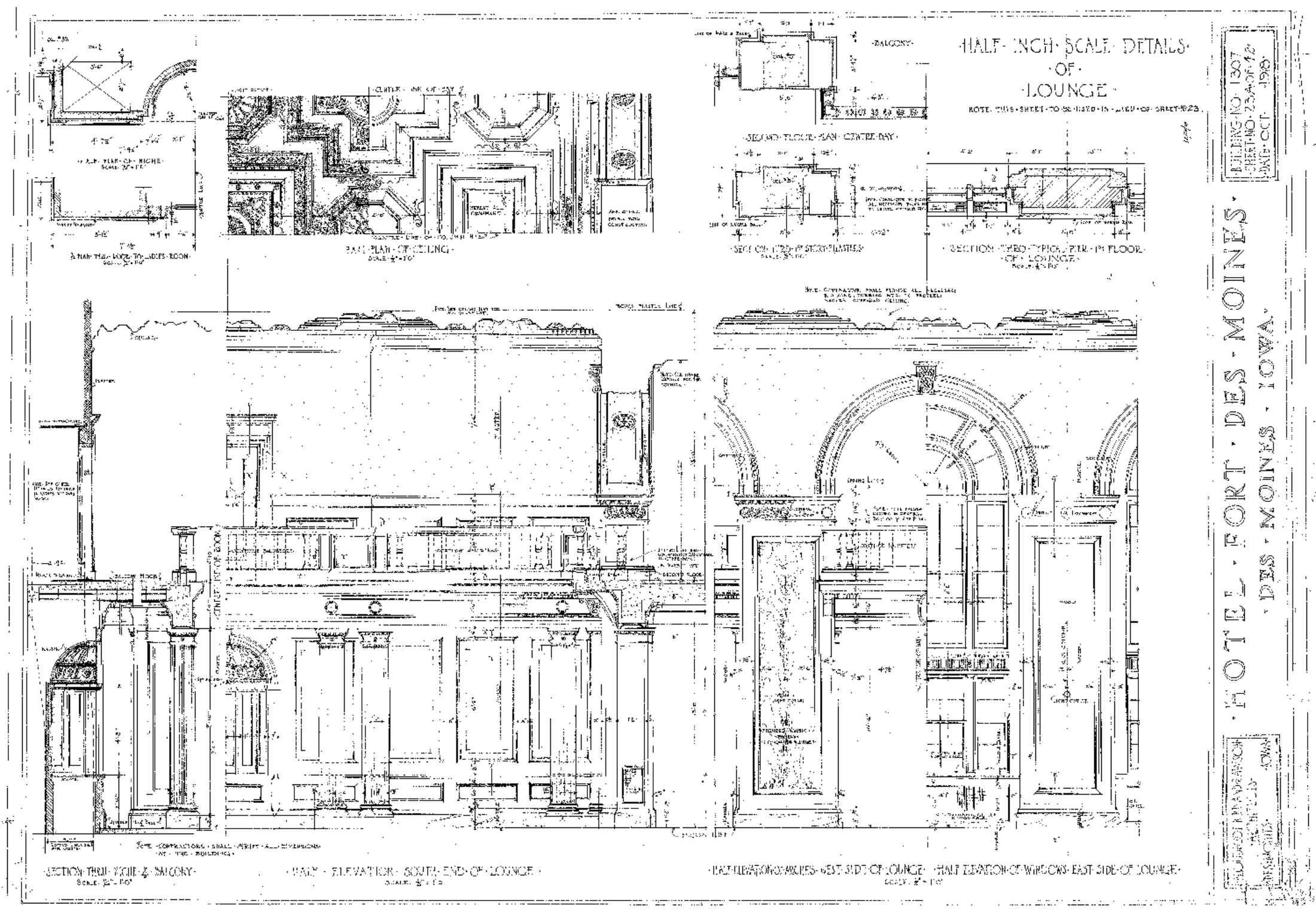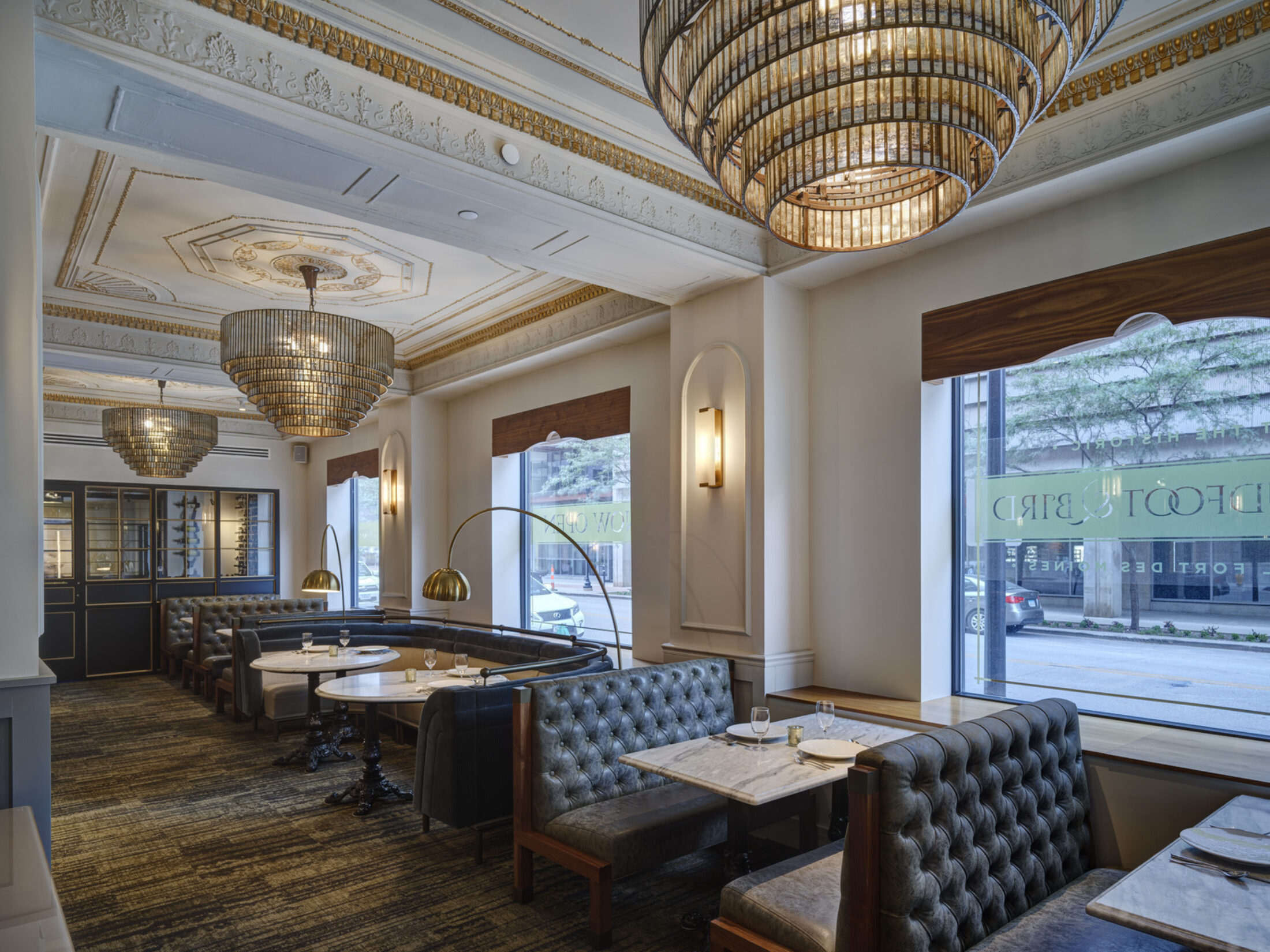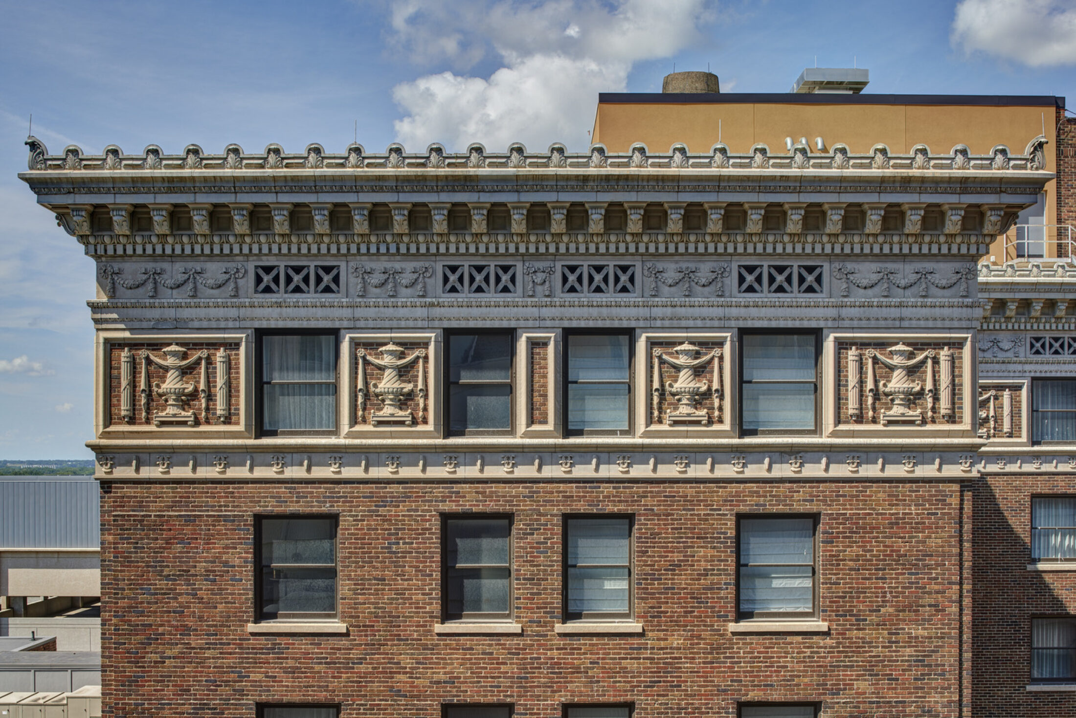 Hawkeye Hotels sought INVISION’s expertise to renovate the historic Hotel Fort Des Moines into a full-service Curio Collection by Hilton boutique hotel. The original hotel, which opened to the public in 1919 as the largest hotel in the state, was designed as an 11-story, renaissance commercial style, reinforced concrete building by the former noteworthy Des Moines architectural firm of Proudfoot, Bird and Rawson. The building footprint utilizes an H‑shape” with two-story front infill serving as an enclosed atrium. Design features include the classical base-column-capital tripartite divisions, a façade in the two-story lobby consisting of five semi-circular arches set into granite and limestone veneer, exterior stonework extending up to the third floor, matching parapet with stone finials topping the atrium, prominent terra-cotta entablature and cornice along the uppermost floor.