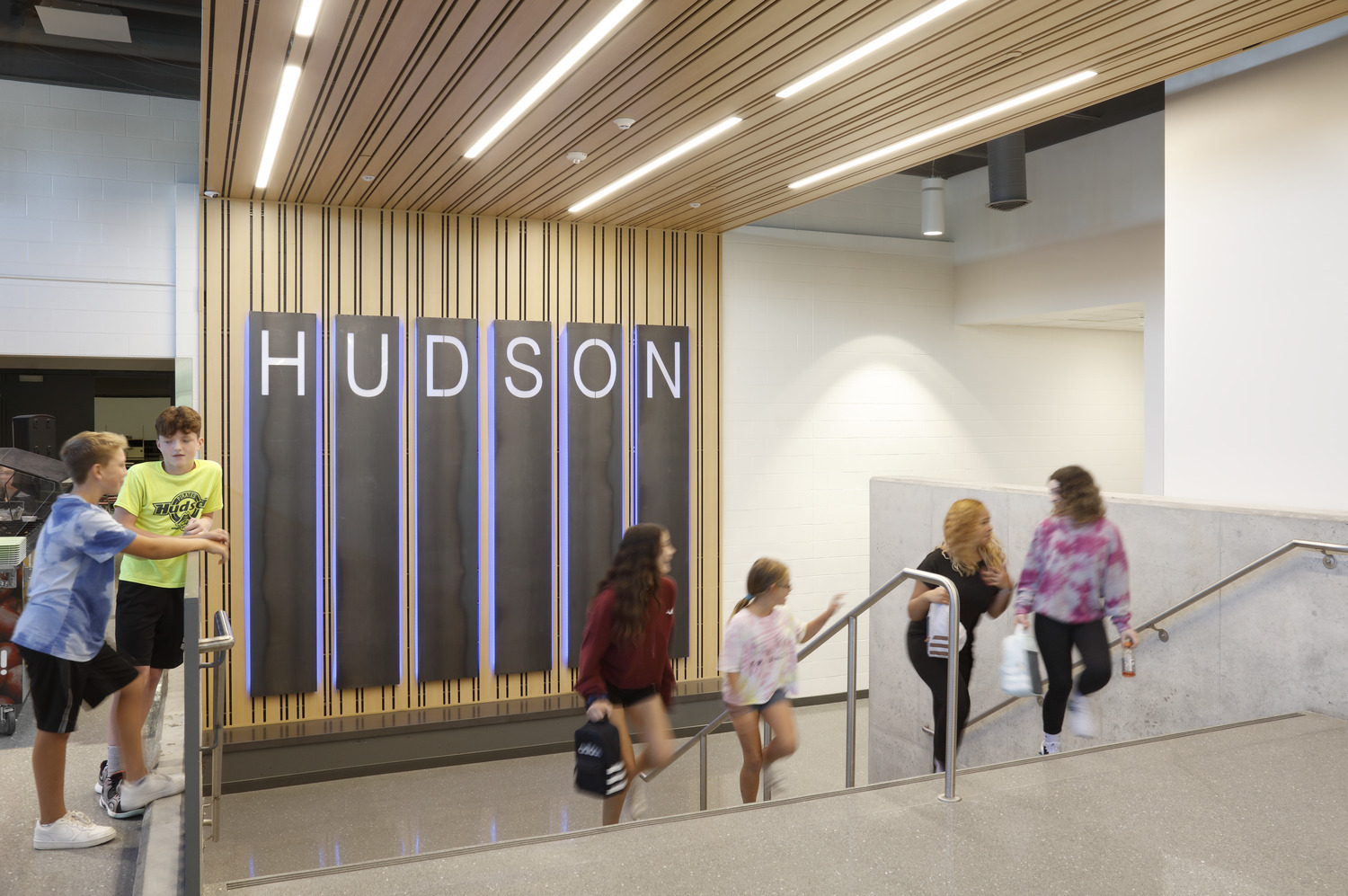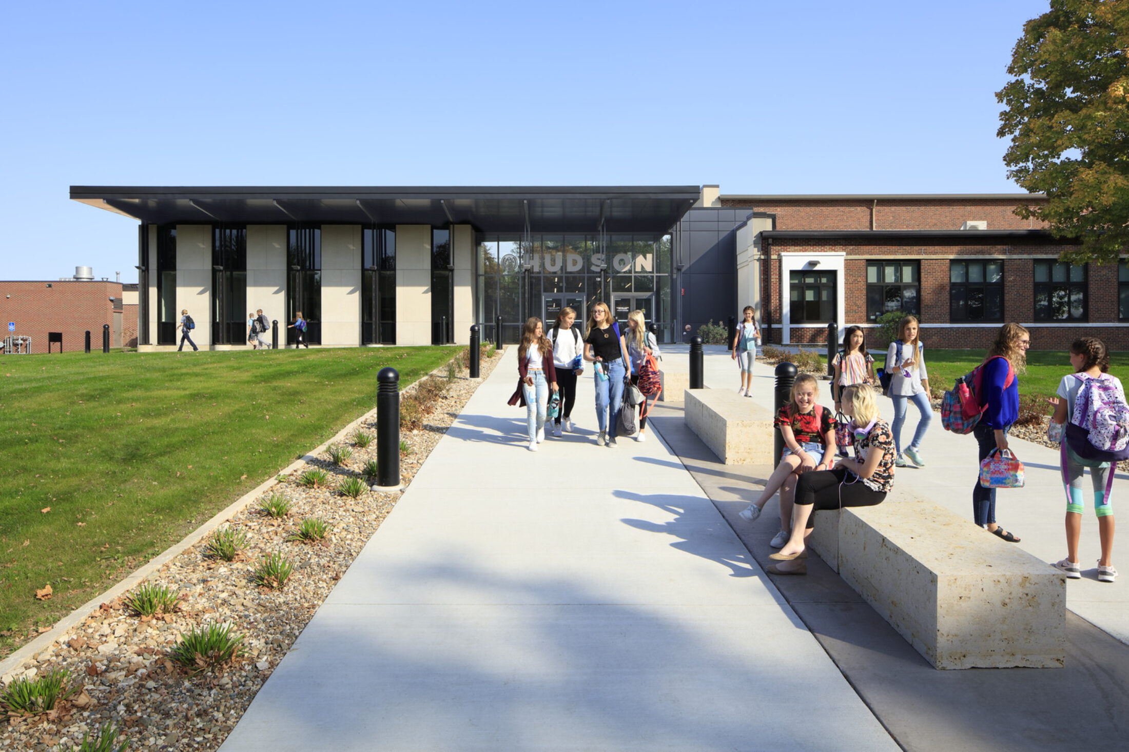 The Hudson school campus evolved over the years with multiple additions, which led to a disjointed, confusing environment. The district was also predicting significant growth in enrollment that needed to be accommodated. INVISION worked collaboratively with Hudson Community Schools to define a future vision through a master planning process that engaged community, staff, and students. The first step of the master plan involved a multi-phased redevelopment of the elementary and middle school.