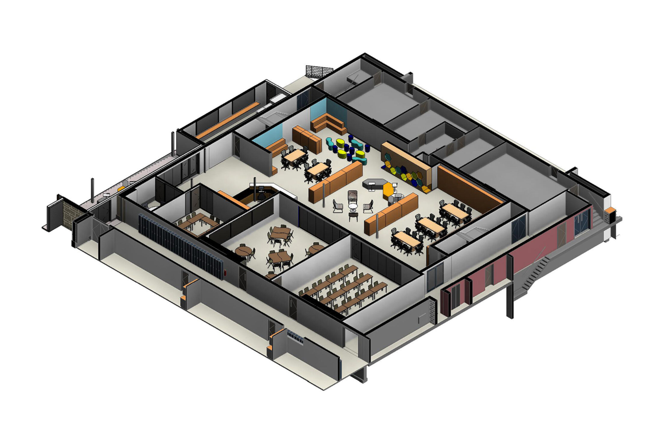From a new commons, renovated media center, and a welcoming and secure front door, to taking care of basic deferred maintenance items, the renovation reimagined a central core for campus to bring new life to this aging and disordered community asset.