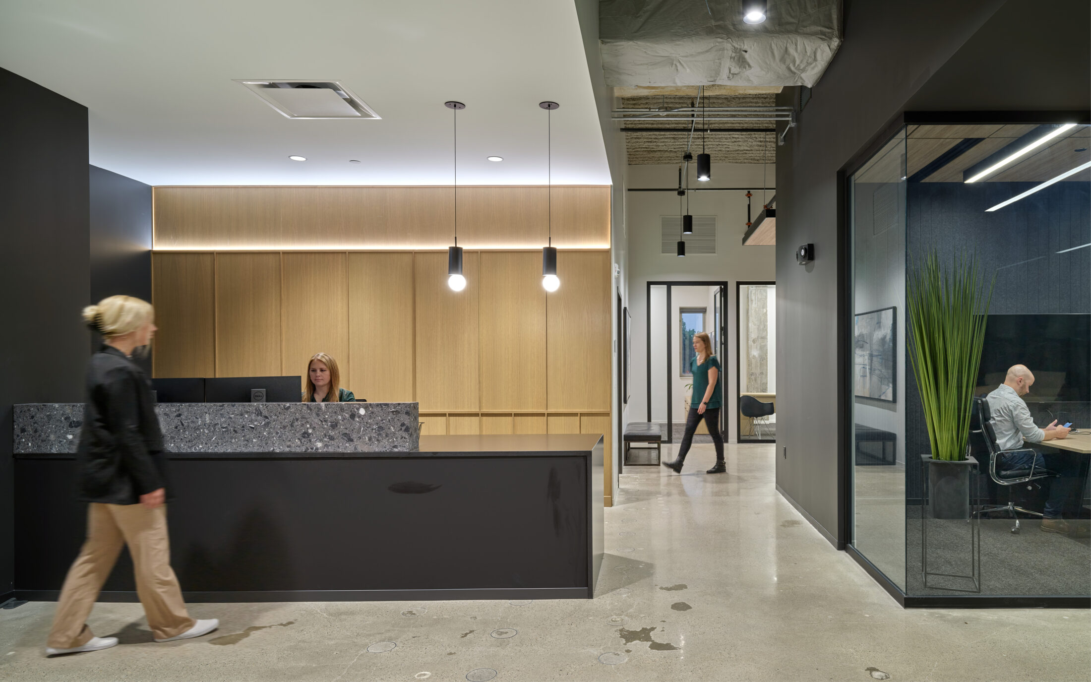 Jester Insurance’s new office in downtown Des Moines blends sophisticated corporate design and innovative architectural solutions to foster transparency, connectivity, and employee well-being. The overarching objective of the project was to honor the character of the space while seamlessly integrating modern elements to refresh finishes.