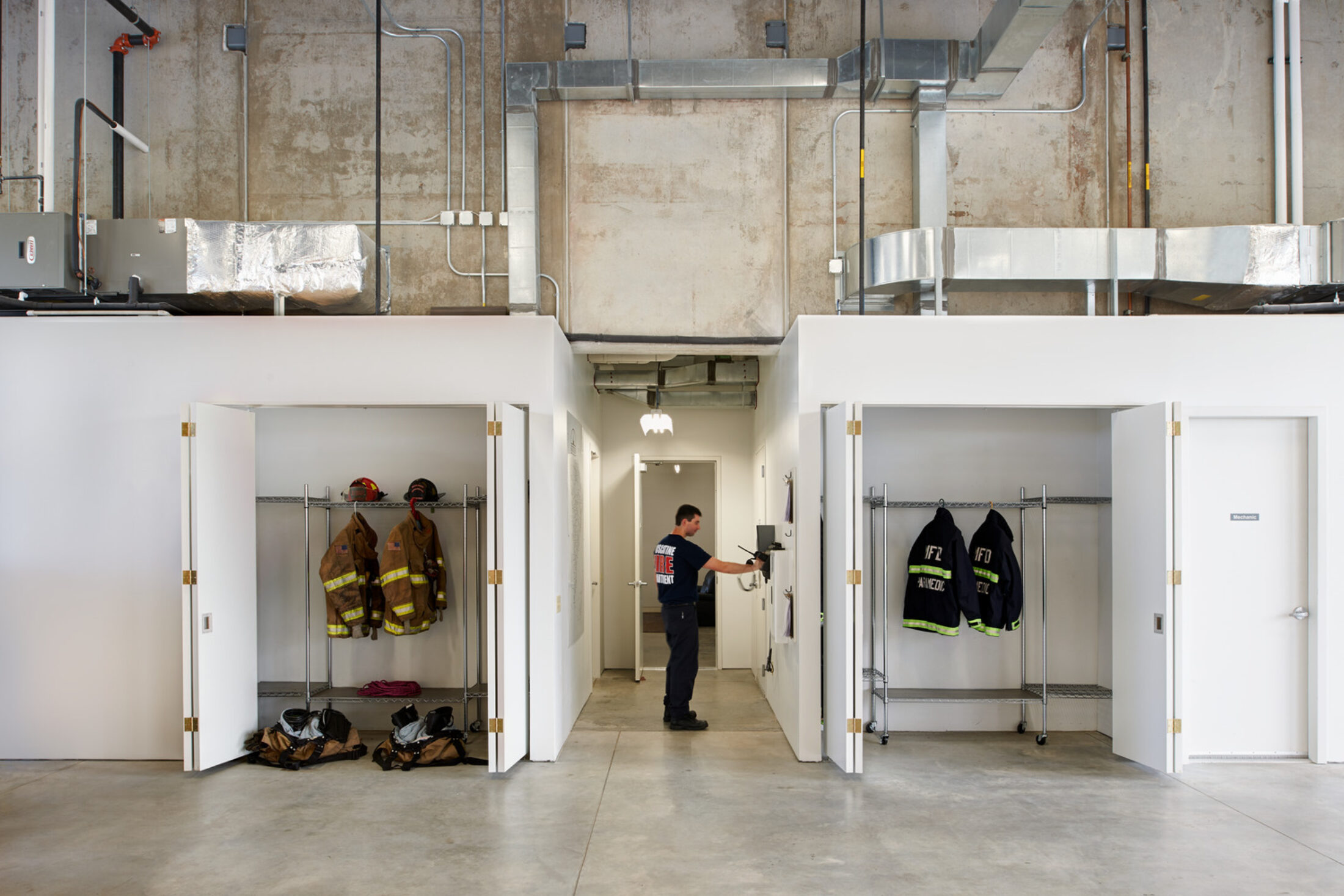 The team worked together to devise a planning solution that positioned the apparatus bay nearest to the railroad to act as a buffer for the living areas in the facility. INVISION worked to integrate the living and work spaces throughout the building, while still clearly designating the living spaces as private to provide security.