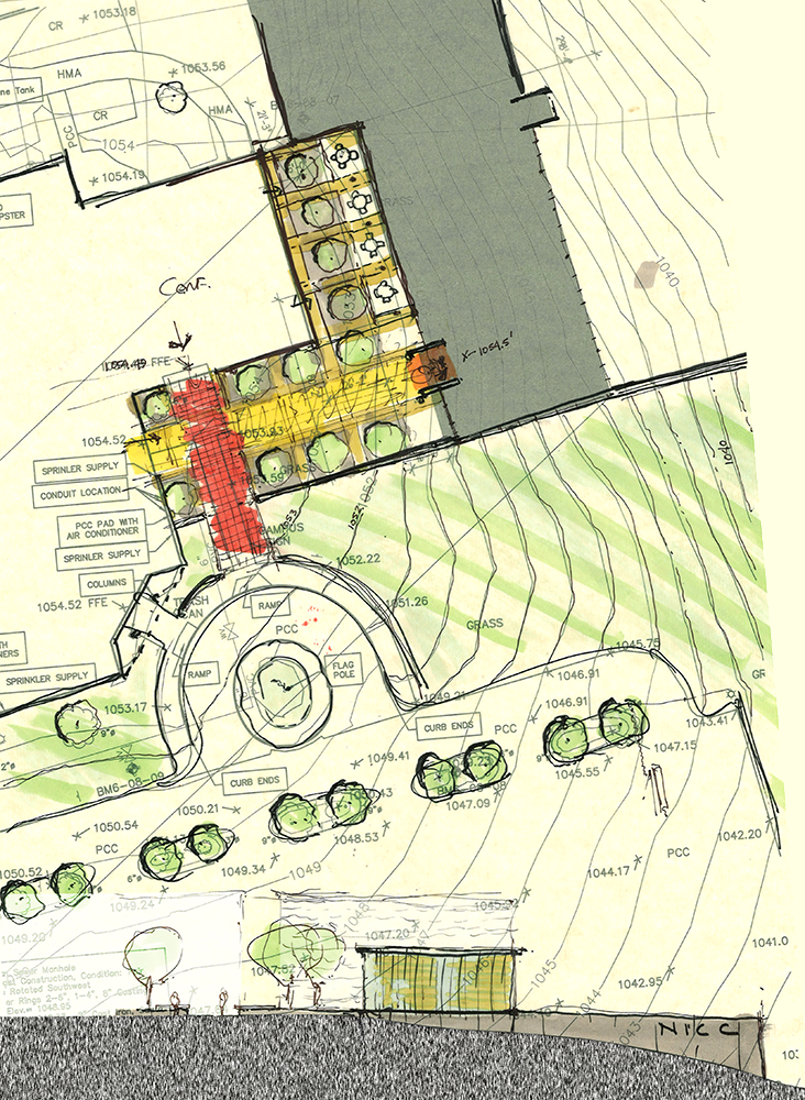 INVISION and NICC talked about the building having a “dirty” side and a “clean” side, separating the campus pedestrian environment from the vehicular services and outdoor space. To facilitate this separation, INVISION designed the project to be built into in a hillside. The lower level “dirty” side of the new facility houses a 12-bay automotive shop and a six-bay diesel lab capable of accepting full-length tractor-trailers. The building also features: