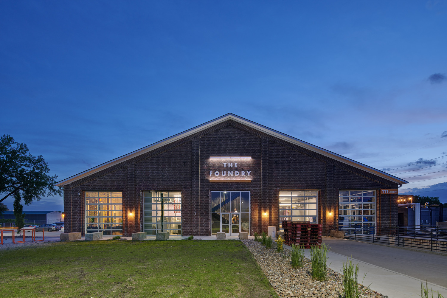 The Foundry is a unique multi-tenant development set inside a historic railroad maintenance building, originally built in 1899 for the Rock Island Railroad as a box car repair facility. This innovative project brings together a beer hall, distilling company, and commercial kitchen for food trucks into the city’s first mixed-use industrial development.