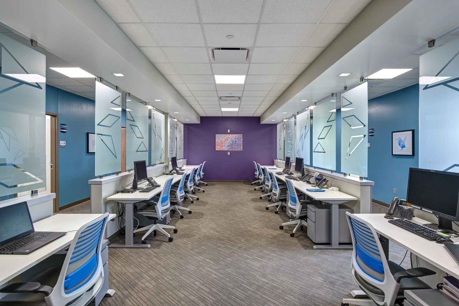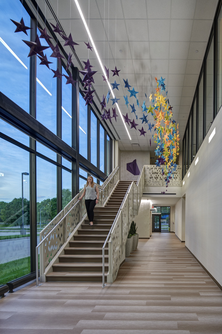 The first of its kind in Iowa, Blank Children’s STAR & Developmental Center offers help and support to local and regional children and youth. INVISION worked closely with UnityPoint Health Des Moines to provide space for both programs to grow. The client needed an inviting but safe space for kids, while also carefully controlling public traffic flow for patient and family safety. Because the needs of the STAR Center patients and Development Center patients differ, each center has designated floors.