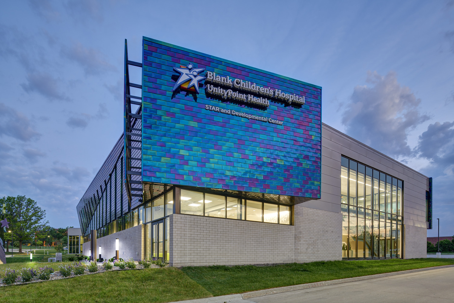 The new, stand-alone facility has a distinct tie-in to Blank Children’s Hospital. INVISION achieved a colorful and playful aesthetic which reflected the unique design of the downtown hospital. With the ever-changing exterior, made possible by interference stainless steel, the facility offers an identifiable and special place for patients and their families.