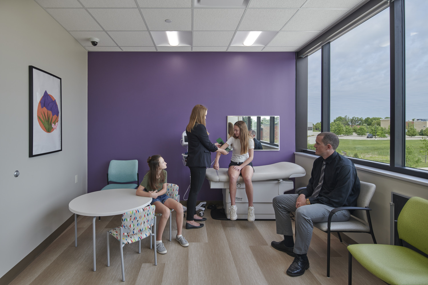 - Wall-mounted interactive activities for children while they wait