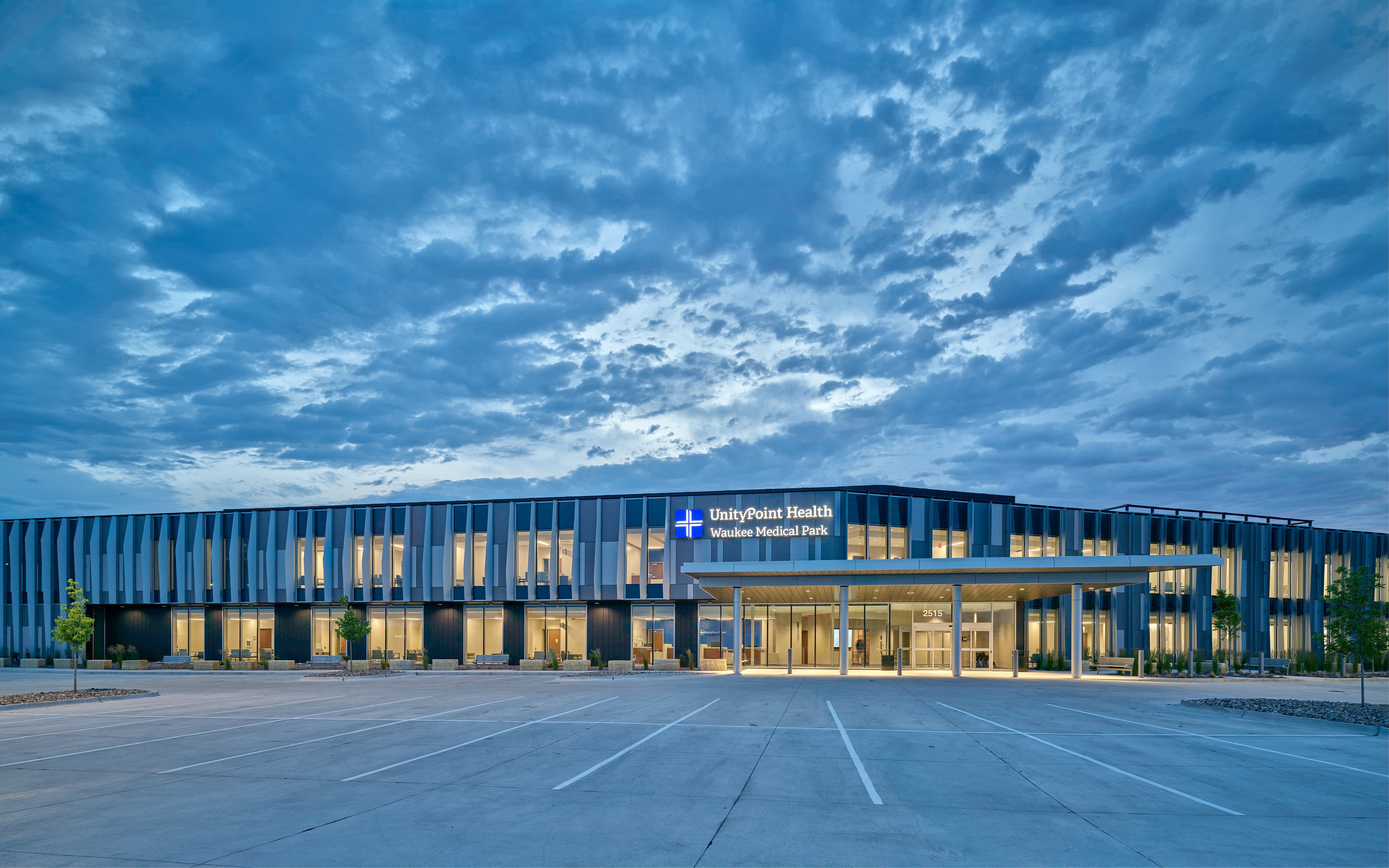 The UnityPoint Waukee Medical Park is a 72,000 sf multispecialty clinic that provides a variety of medical services in one convenient location, including family medicine, internal medicine, cardiology, neurology, dermatology, obstetrics and gynecology. Lab and imaging are also available, bringing all-encompassing care to Waukee and the surrounding communities. The primary goals of this project were to create a space that supports the well-being of patients, staff, and visitors while also being designed for future adaptability.