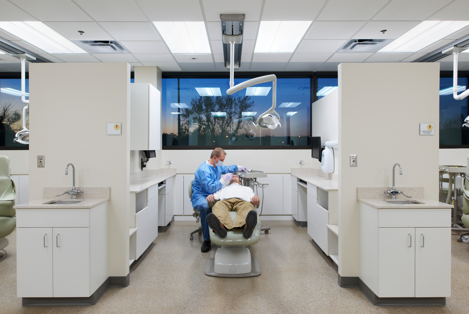 Work included over 300 new dental chair operatories, as well as renovated laboratories, classrooms, faculty offices, and clinic support spaces. The design of overlapping functions and shared interior spaces provided a more efficient and collaborative environment, while new program areas were successfully added into an existing building footprint without compromising function. Additionally, design efforts centered on obtaining LEED Silver certification.
