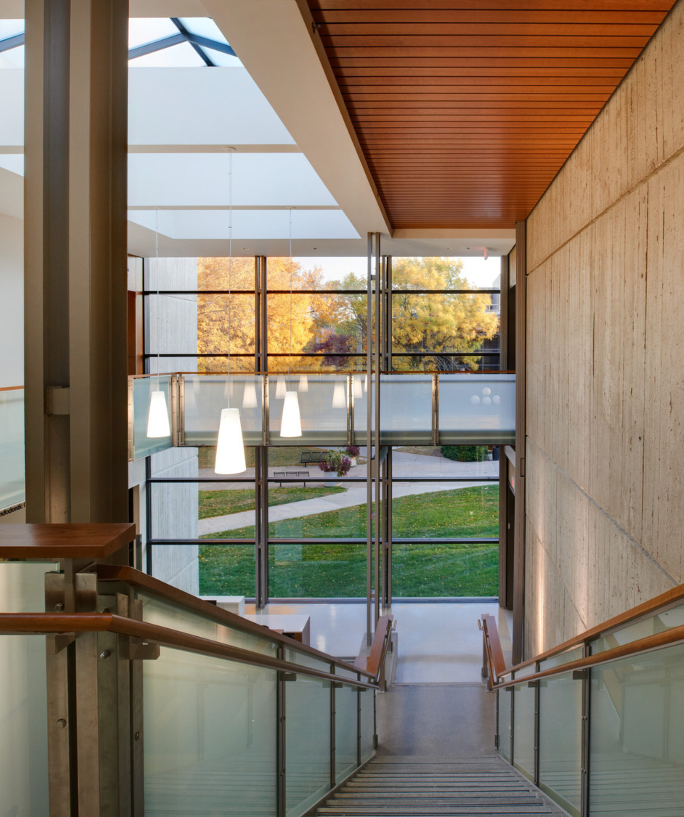 Finish upgrades throughout the building took the space from a sterile, white environment to an elegant and sophisticated education center. The design team worked to integrate many needs into one patient-centered solution that encourages collaboration and accommodates opportunities for present and future modernization.