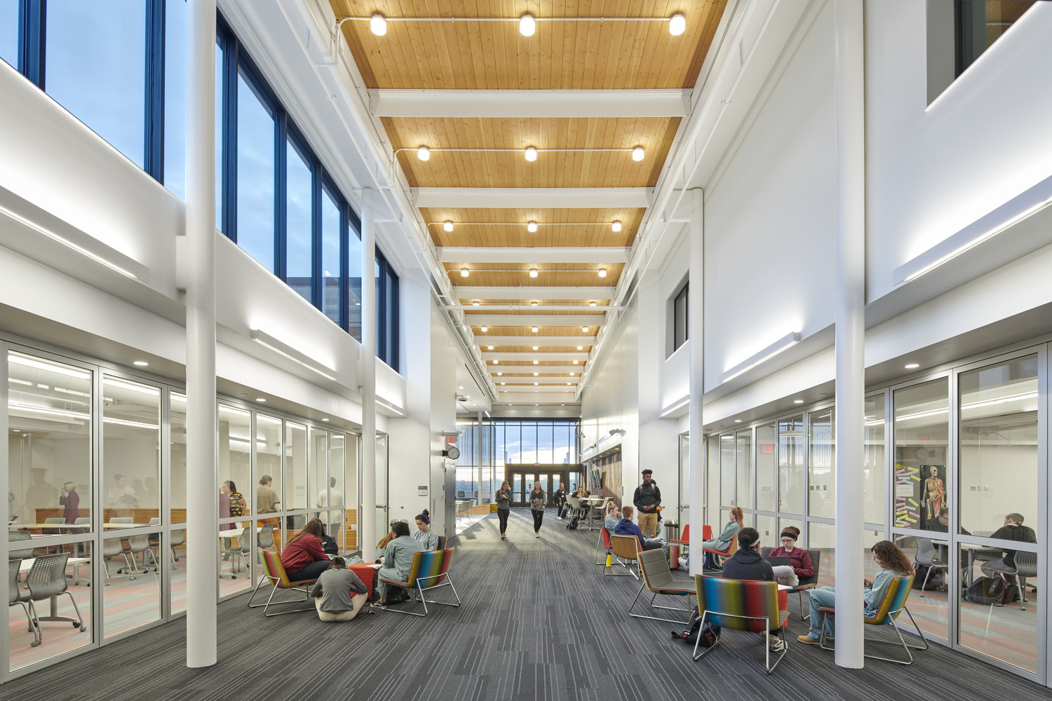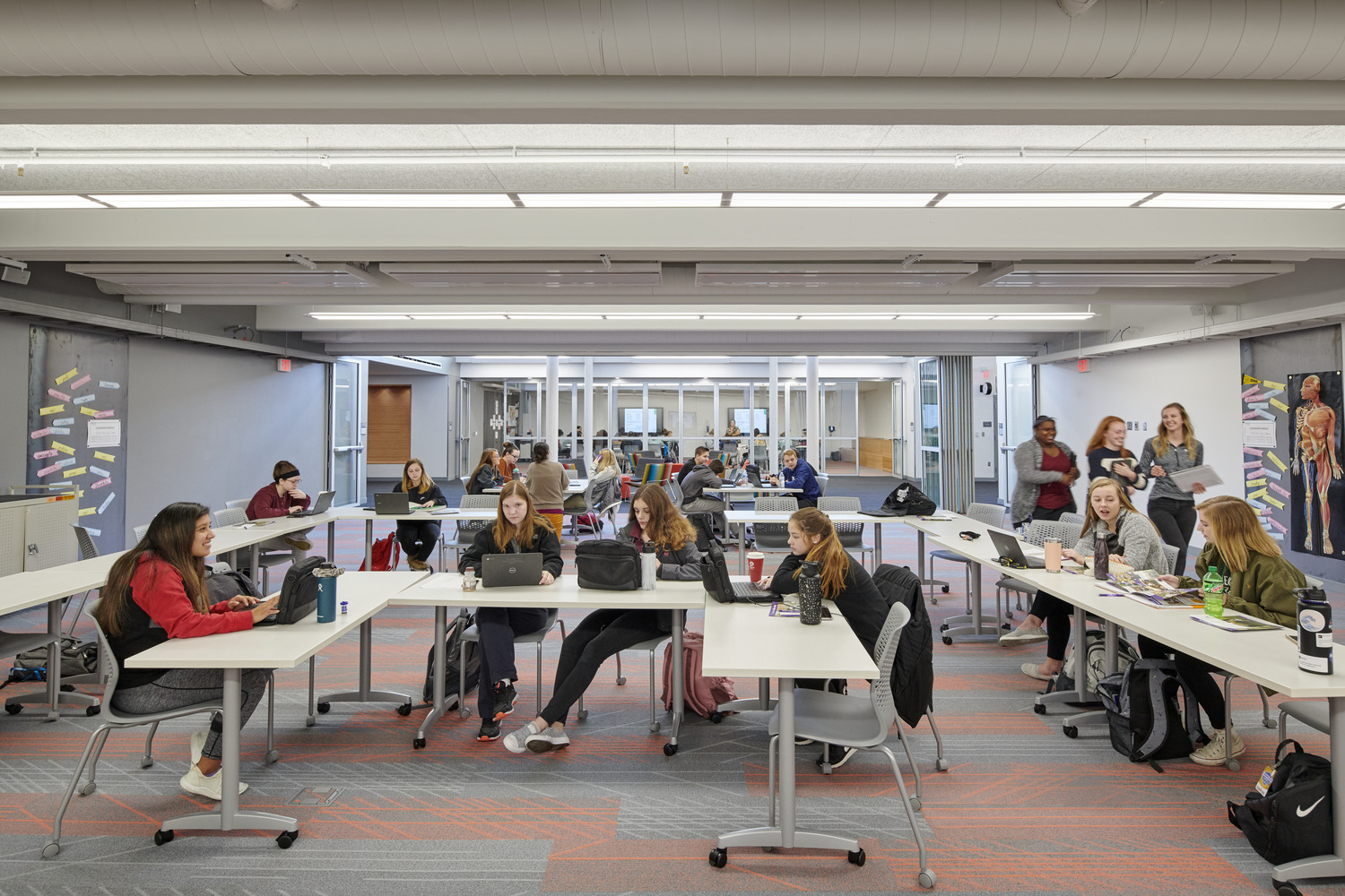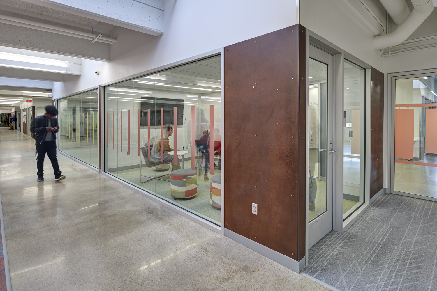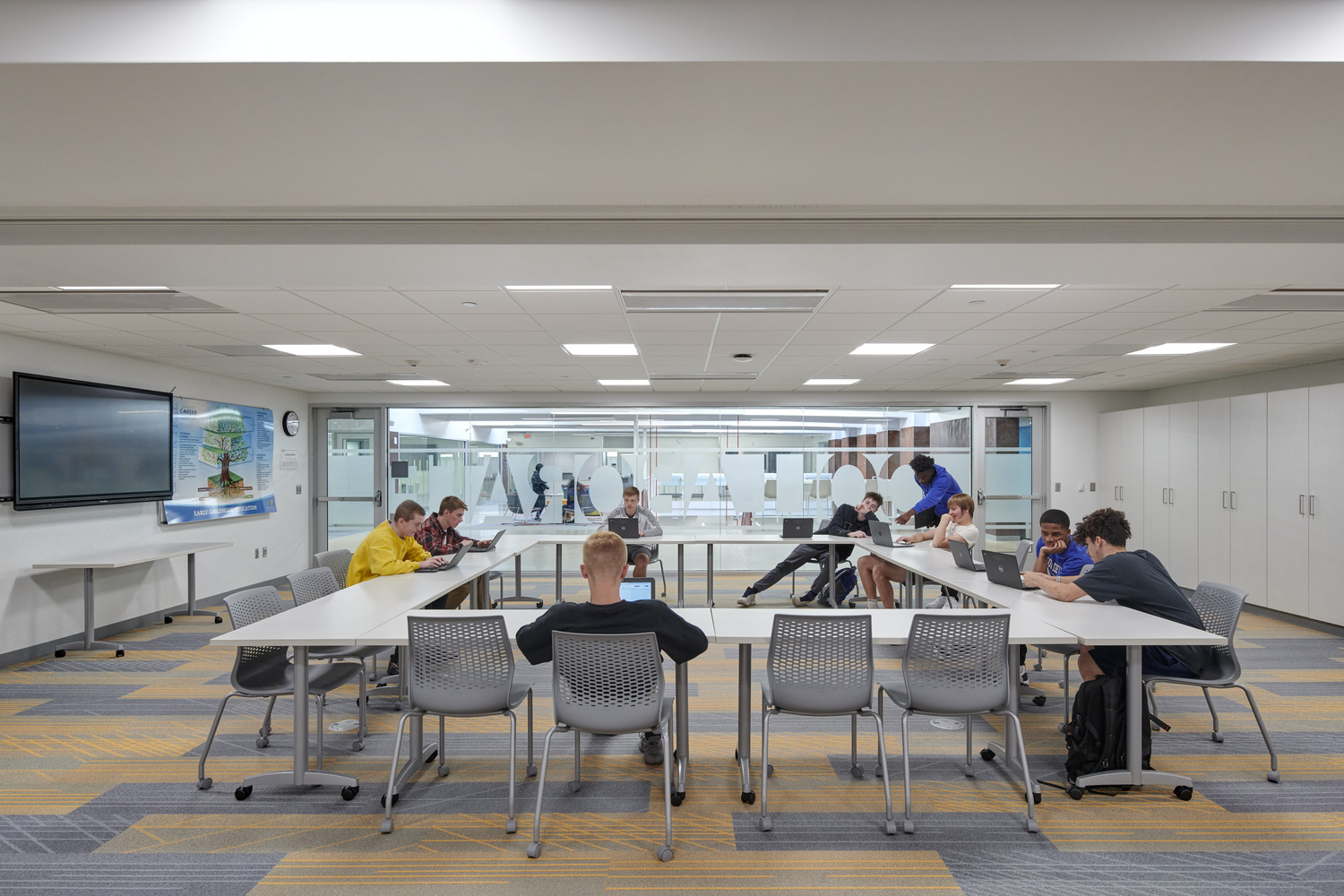 To provide the space needed, INVISION designed a single-story addition and a major interior renovation. An important goal for the project was to use daylighting strategies to draw natural light into the previously dark interior. The finished space supports 15 new programs in spaces ranging from high-bay labs to collaborative classrooms for cross-disciplinary education, planned for flexibility as programs adjust over time. Since the opening of the newly expanded Waterloo Career Center, the career training program has grown exponentially with more new students each year.