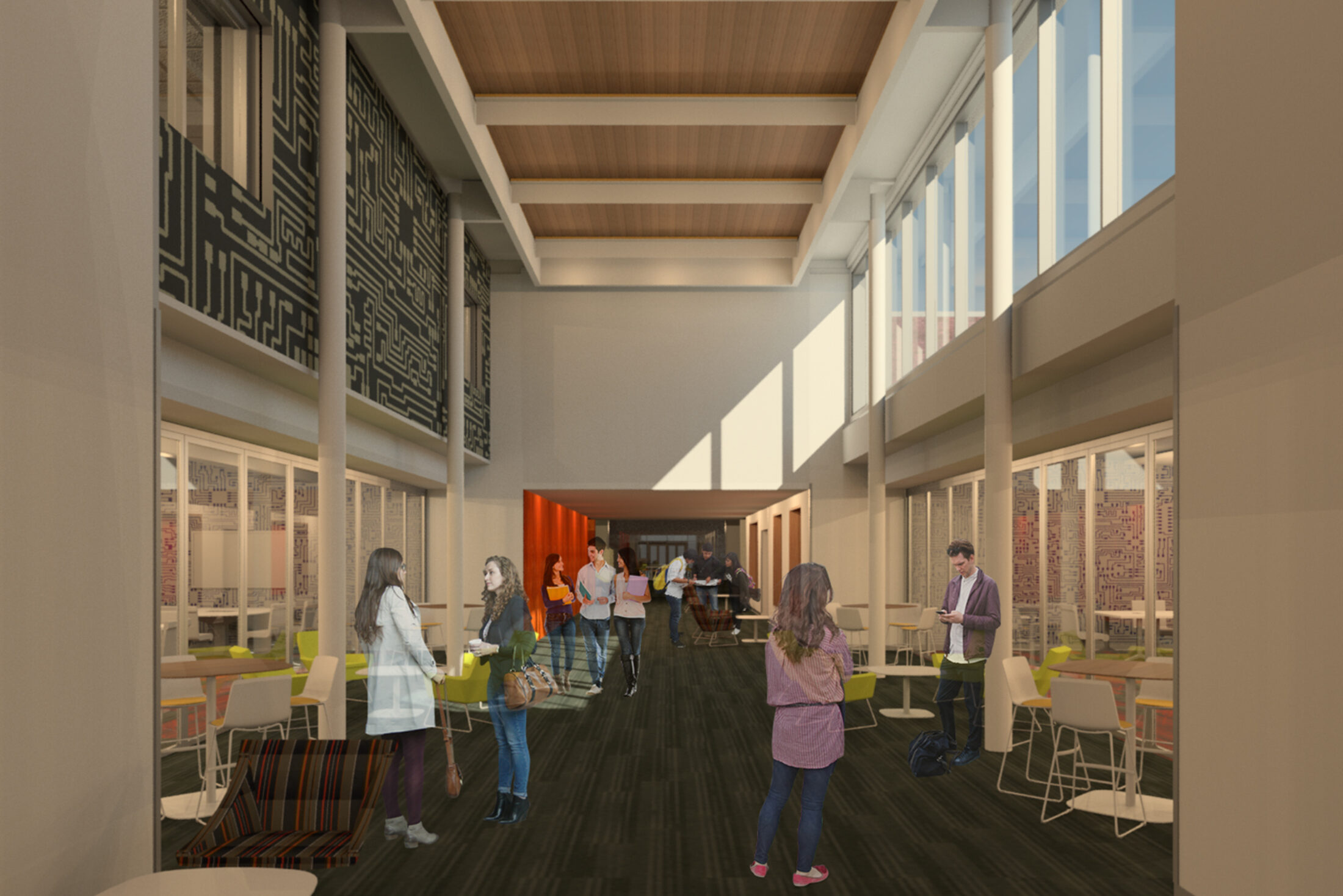 With the goal of expanding career pathways for students in Waterloo and the surrounding communities, the school board worked with INVISION to plan an addition and renovation to Central Middle School that would support flexible, active, 21st century learning. The existing school, built like a concrete bunker in the 1970s, was underutilized and had very little natural light.